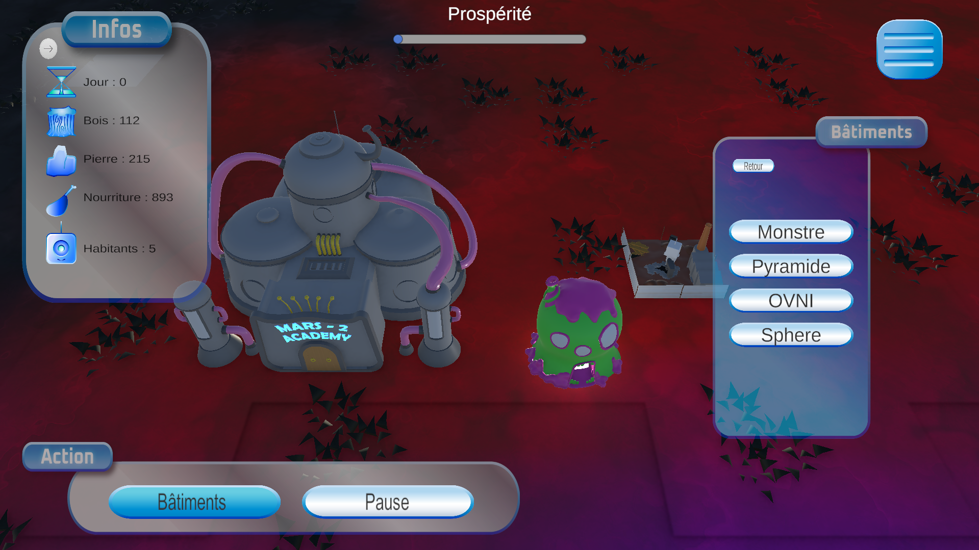 This is Mars 2, a management game set on the planet Mars 2 (2 because there's already a planet called Mars). In this game, you must help Martians build a village and increase their prosperity.